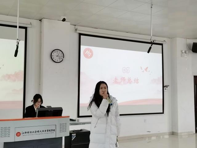 会议最后,会计学院党总支副书记孙筠进行总结发言。她对同学们的辛苦付出表示感谢,肯定了各部门在本学期工作中取得的成绩,同时也指出了大家在工作中存在的一些问题,希望未来学生会各部门继续互帮互助,携手共进,创造属于会计学院的青春花火。