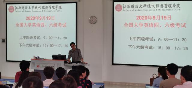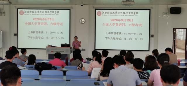 为确保全国大学英语四、六级考试的组织工作严格有序开展,学院教务部于9月15日下午在第一教学楼1101教室组织召开了大学英语四、六级考试考务、监考人员培训会。学院教学质量监控与评估中心主任、副院长丁美东,教务部主任王妮妮,专升本教学部主任丁建霞及全体监考教师和考务工作人员共同参加了本次会议,会议由教务部主任王妮妮主持。