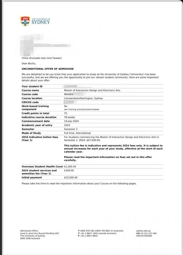 大学期间,新媒体中心任职和大自律管理微信公众号运营的经历,让惠博楚对媒体行业认识不断加深的同时,也使她对这个领域产生了浓厚的兴趣,希望进一步深入了解。为了深化对媒体行业的理解,也为了在学术上有更深入的研究,继续提升自己的能力,她坚定地选择了考研这条路。基于本科专业的学习,以及对媒体领域的兴趣,惠博楚选择了跨考交互设计与电子艺术这一新兴的跨学科专业,希望在数字媒体和艺术领域进行高层次的学习,汲取更丰富的知识,为将来进入更好的行业或科研机构打下坚实的基础。“国外的大学在部分领域有着更先进的研究和更丰富的资源,这对我的学术发展很有帮助。同时,我想体验不同的教育体系和文化背景,提高自身素养,开阔视野。”因此,惠博楚把考研目标院校锚定于国外——澳大利亚悉尼大学。