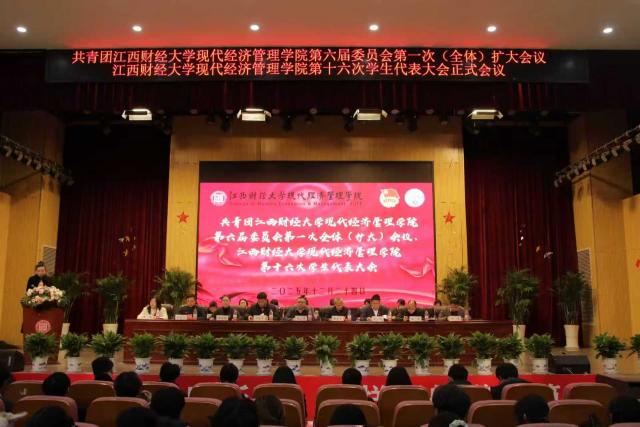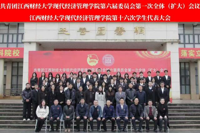 为深入贯彻落实党的二十届四中全会精神,紧扣立德树人根本任务,12月24日下午,学院在明德楼大学生活动中心召开共青团江西财经大学现代经济管理学院第六届委员会第一次全体(扩大)会议、第十六次学生代表大会(以下简称“双代会”)。学院院长毛小兵,党委书记黄黑平,党委副书记邱晓平,副院长吴小刚、副院长王妮妮、副院长王辉出席会议。