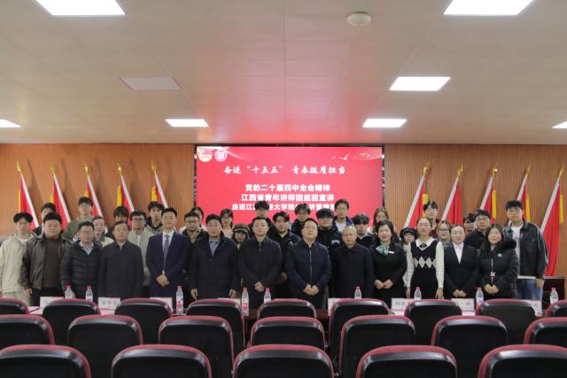 为深入贯彻落实党的二十届四中全会精神,让全会精神在广大青年学生中入脑入心、走深走实,12月26日中午,学院特邀江西省青年讲师团成员李圆圆、程洪、胡智中、符洁,在敬业楼101室举办了“奋进‘十五五’青春挺膺担当”党的二十届四中全会精神江西省青年讲师团巡回宣讲会。九江团市委宣传部部长陈凡,学院党委书记黄黑平,党委副书记邱晓平,党委委员、宣传部部长、统战部部长张富成出席活动。党校校长、党委组织部副部长吴娇,学院党委学生工作部部长冯伟,学生代表参加本次活动。
