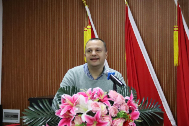 王金海代表学院对莅临大会的各位领导嘉宾致以热烈的欢迎和衷心的感谢,并就学院发展历程、专业学科建设、师资队伍以及国际化工作做了介绍,表示学院始终重视国际化工作,通过国际交流拓展人才培养模式,强化师资队伍建设。他表示,中外语言交流合作中心的成立标志着学院在国际交流与合作方面迈出了更为坚实的步伐。该中心将致力于为学院及属地学生学习外语,为中外语言交流合作、世界多元文化互学互鉴搭建友好协作的平台,为国际化人才的培养提供更为广泛的机会。
