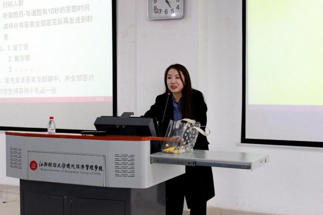 会上,李雅芹老师对英国授课式硕士课程教育体制、英国埃塞克斯大学尤其是它的商学院进行了介绍,并具体从学术水平、王牌专业、地理优势、优秀校友、学生满意度、宿舍环境和就业支持等方面进行了深入讲解,学生们表示收获颇丰。在最后的问答环节,讲座嘉宾和学院国际交流中心老师与现场同学进行了亲切互动。(图文/国际文化交流中心)