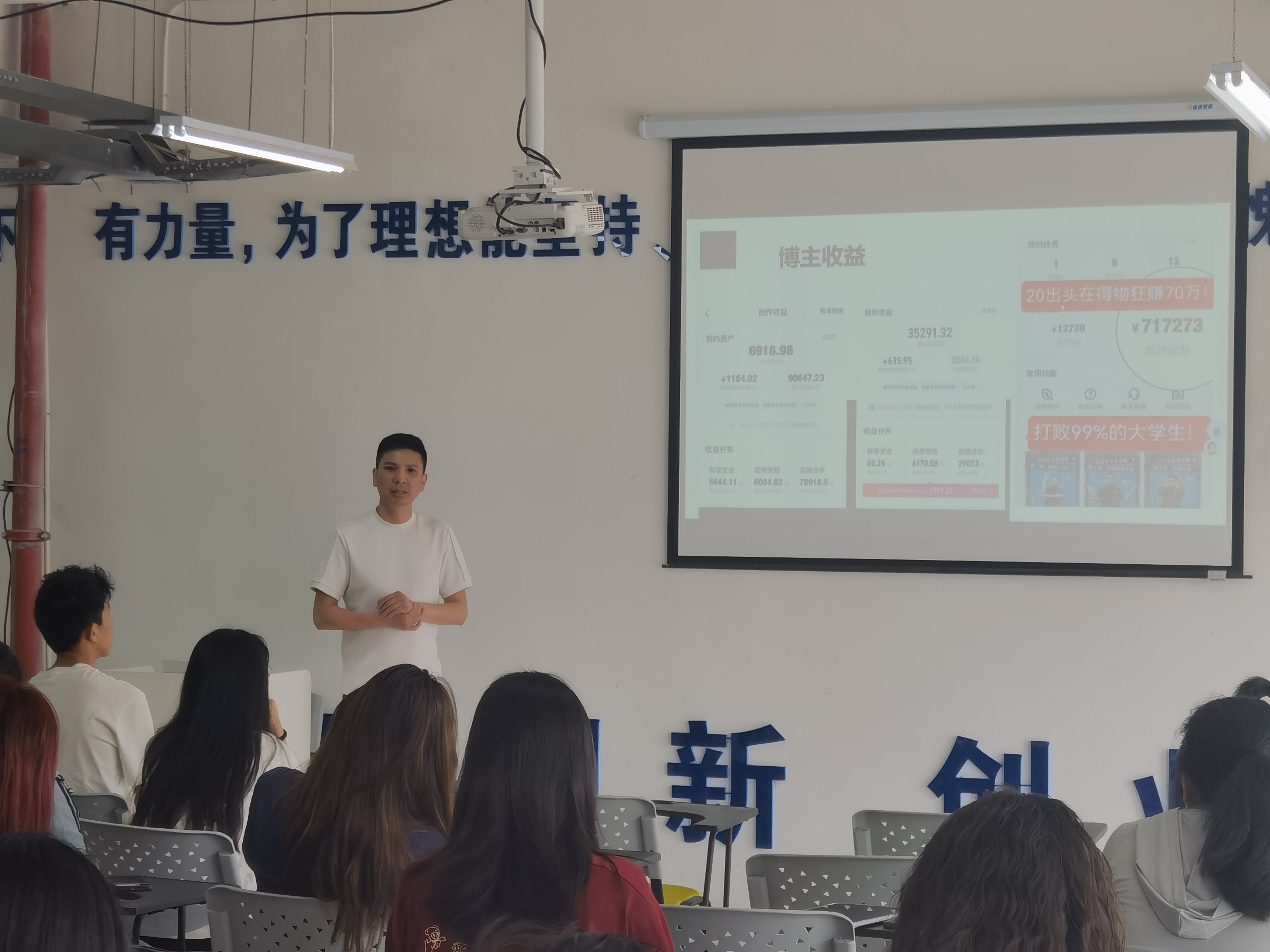 在数字经济浪潮奔涌的当下,为深化产教融合,助力学生把握时代机遇,5月25日上午,学院在数智电商产业基地开展电商直播技能培训及得物达人孵化培训。此次培训特邀江西环游网络科技有限公司运营主管万龙、讲师吴志阳授课,吸引近80名同学踊跃参与。