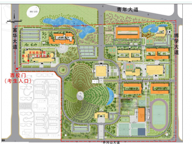 1.所有考生从学院西门(富华大道)入校(校园平面图见附件2,请导航至“江西财经大学现代经济管理学院西门”),第一场考试的考生需在8:00前到达等待进入考场;第二场考试的考生需在10:20前到达等待进入考场。请各位考生注意入场时间,避免造成拥挤。