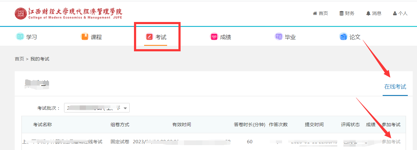 登入网址为:http://jxufe.sccchina.net,学生输入用户名和密码登录进行考试,用户名是身份证号,密码默认是身份证号后六位,如果尾号为X,请用大写。
