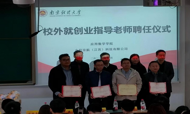 授聘仪式上,孙晓飞首先对各位专家导师的到来表示热烈的欢迎,对他们能够受聘南京财经大学应用数学学院就创业指导老师表示衷心的感谢。他表示,多位老师接受邀请成为南京财经大学应用数学学院的就创业指导老师,对于南京财经大学应用数学学院今后的学科建设、内涵发展具有重大意义,希望指导老师与南京财经大学应用数学学院加强学术交流和项目合作,积极为学院发展建言献策。