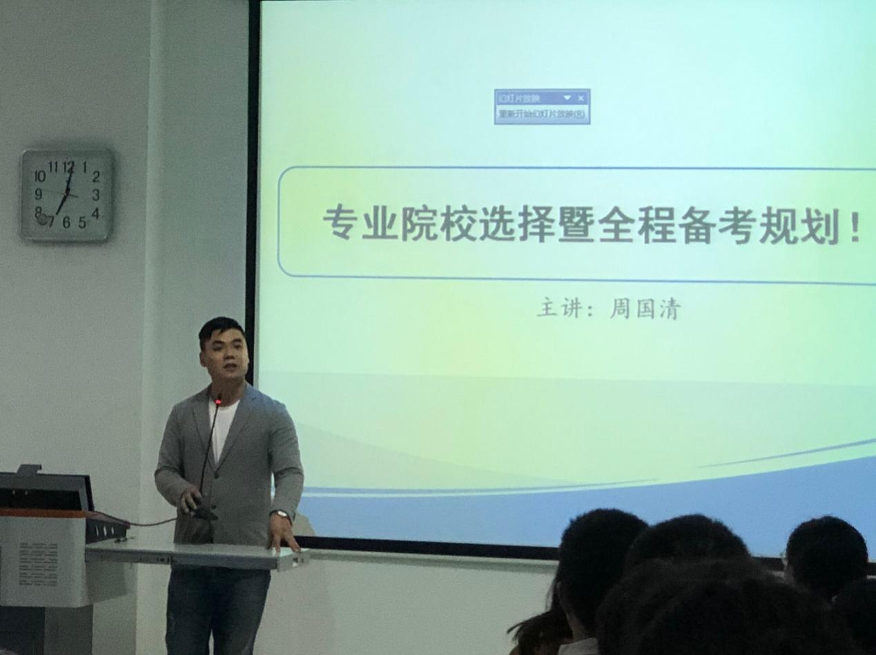 为加强我院学风建设,进一步营造我院浓郁的学习氛围,缓解学生的考研压力,保障考研创佳绩。11月4日晚聚英考研江西分校校长周国清应邀莅临我院,于共青校区求知教学楼1201室开展题为“专业院校选择暨全程备考规划”的考研讲座。