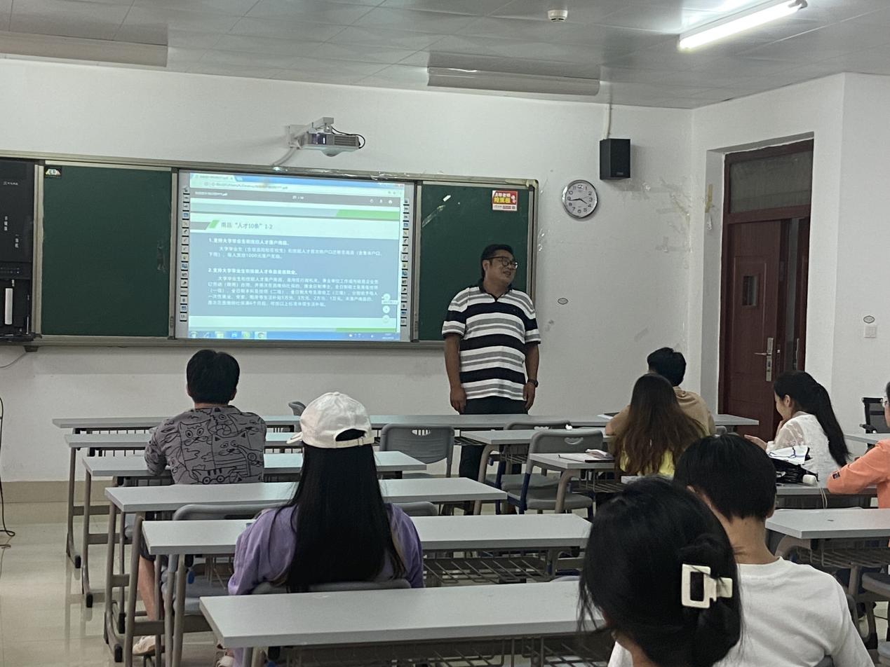 为贯彻落实教育部“大学生创业引领计划”,推动我院大学生创新创业工作的深入开展,鼓励毕业生留昌就业创业。创新创业教育中心于9月21日下午在求真教学楼2317举办2023届大学生专项技能提升班暨南昌“人才10条”推介会,创新创业教育中心负责人纪奥及全体部门教师、2023届各班就业委员参加此次会议。