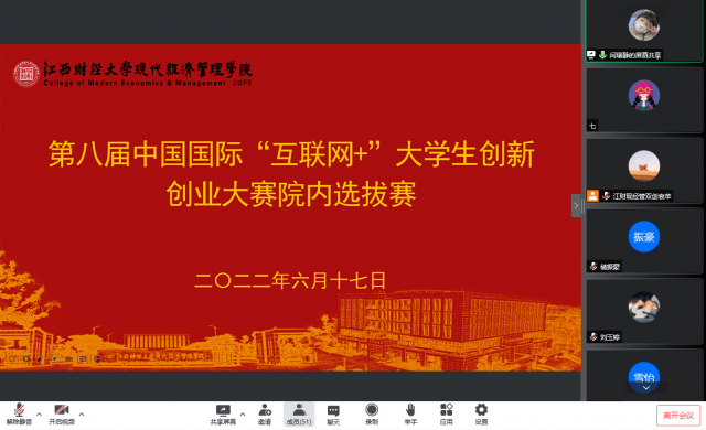 为激发大学生的创新创业的热情,培养出具有创业思维和创业能力的人才,展示我院创新创业教育成果,创新创业教育中心于6月17日上午在线上举办了第八届“互联网+”大赛院赛。创新创业教育中心主任纪奥、数字与经济系党总支副书记袁园等7位经验丰富的指导老师担任评委,我院共有17个项目团队参加了此次院赛。
