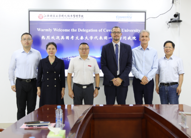 毛小兵对Craig Blyth协理副校长一行的到访表示热烈欢迎,并通过照片与考文垂大学代表共同回顾了两校合作历程,同时简要介绍了我校的办学历史、学科特色及国际化发展成效。他指出,今年是江西财经大学与考文垂大学开展合作的第二十年,具有重要的里程碑意义。二十年来,在两校共同努力下,双方建立了持续稳定的交流互访机制,友谊不断深化。今年也是两校共建孔子学院的第十年,标志着两校合作迈上了新台阶。毛小兵表示,考文垂大学已成为江财在英国的重要合作伙伴。同样,江财也始终欢迎考文垂大学师生来到中国。江西财经大学现代经济管理学院秉承母体学校“信敏廉毅”的校训精神,坚持开放包容的办学理念。希望以此次访问为契机,进一步拓展合作领域,共同开启两校交流合作新篇章。