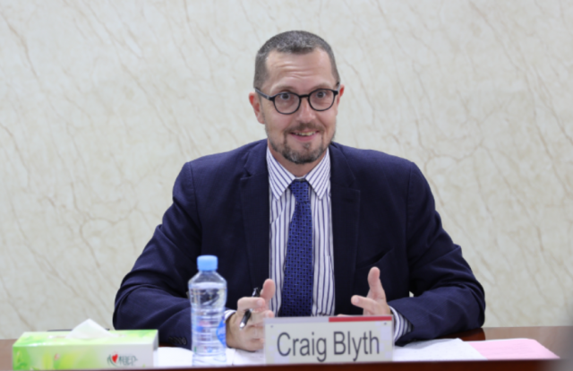Craig Blyth协理副校长对我院的热情接待表示感谢,并介绍了考文垂大学的发展近况,特别是与中国高校的合作成果。他强调,两校在人才培养理念与学科设置方面高度契合,合作前景广阔。他表示,江西财经大学与考文垂大学二十年的合作与互信为未来深化合作奠定了坚实基础,期待尽快落实师生互访、交换项目等具体合作内容。