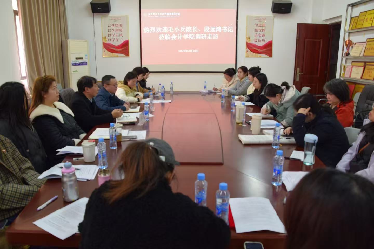 3月10日下午,学院院长毛小兵、党委书记段远鸿深入会计学院,在求真楼2222会议室开展调研座谈,为学院发展把脉定向。