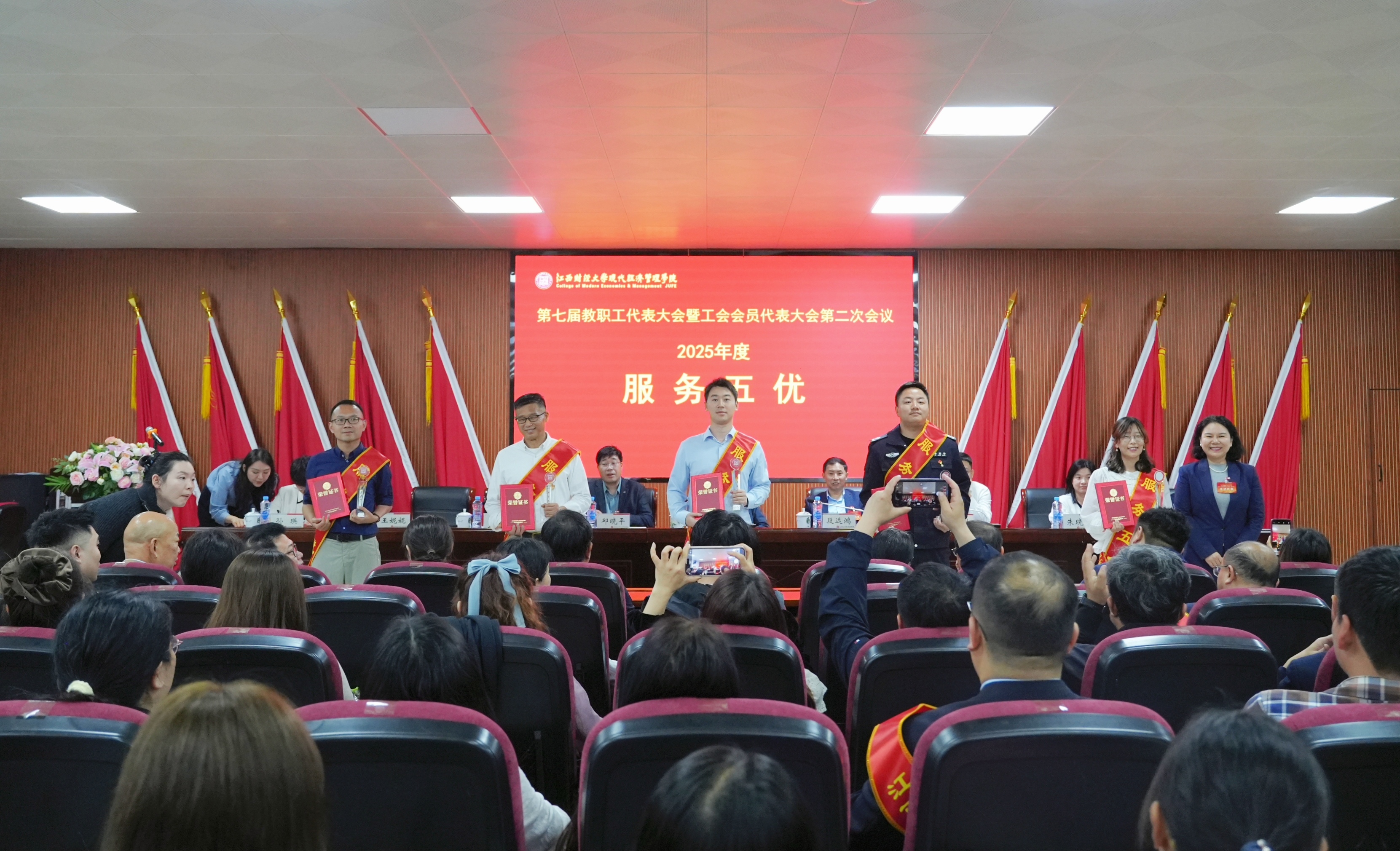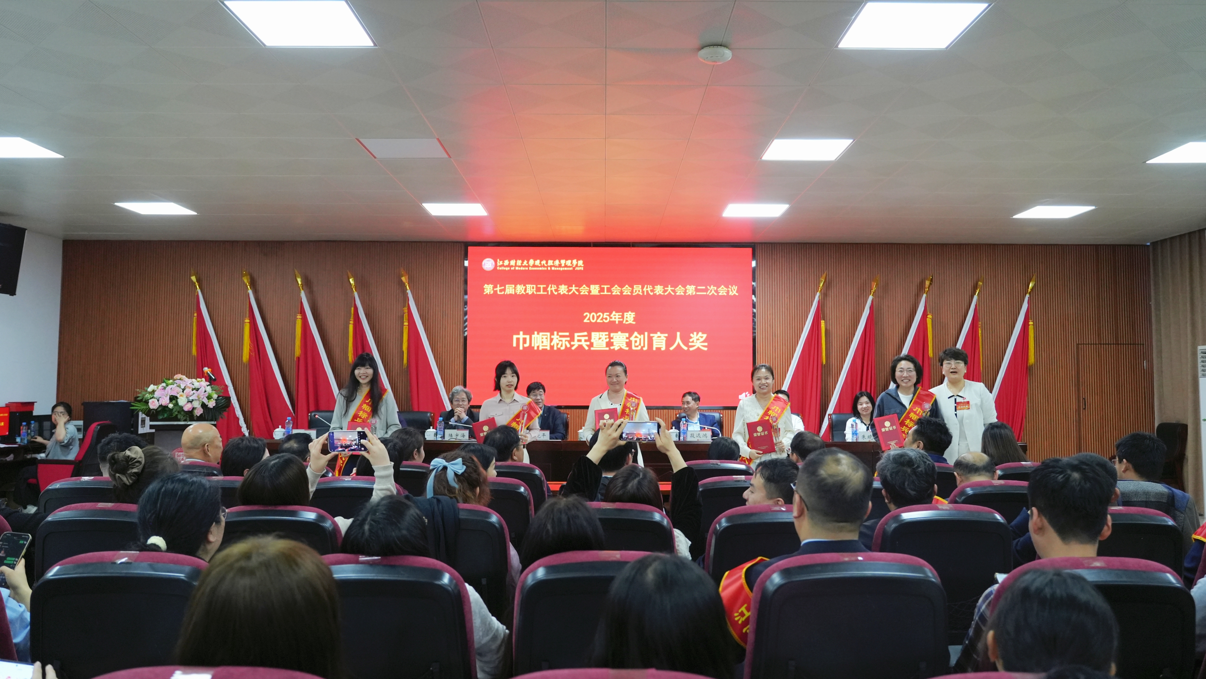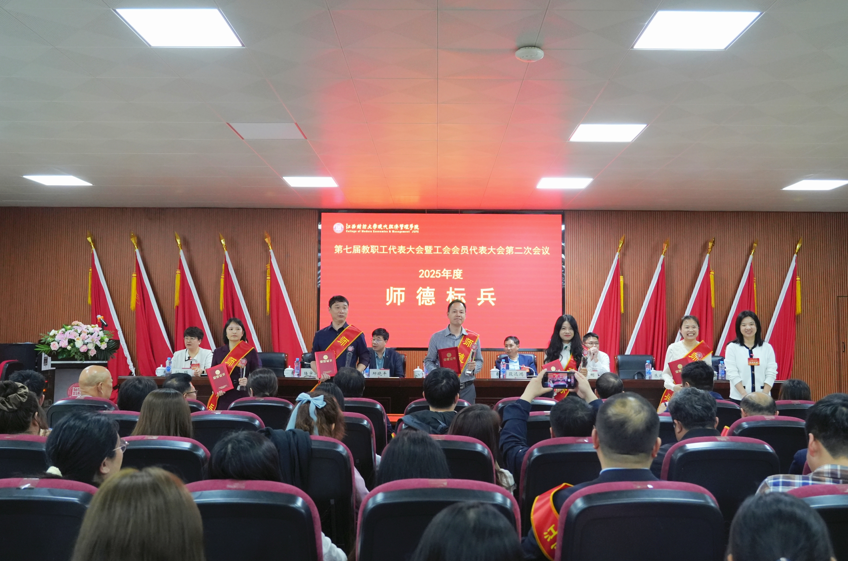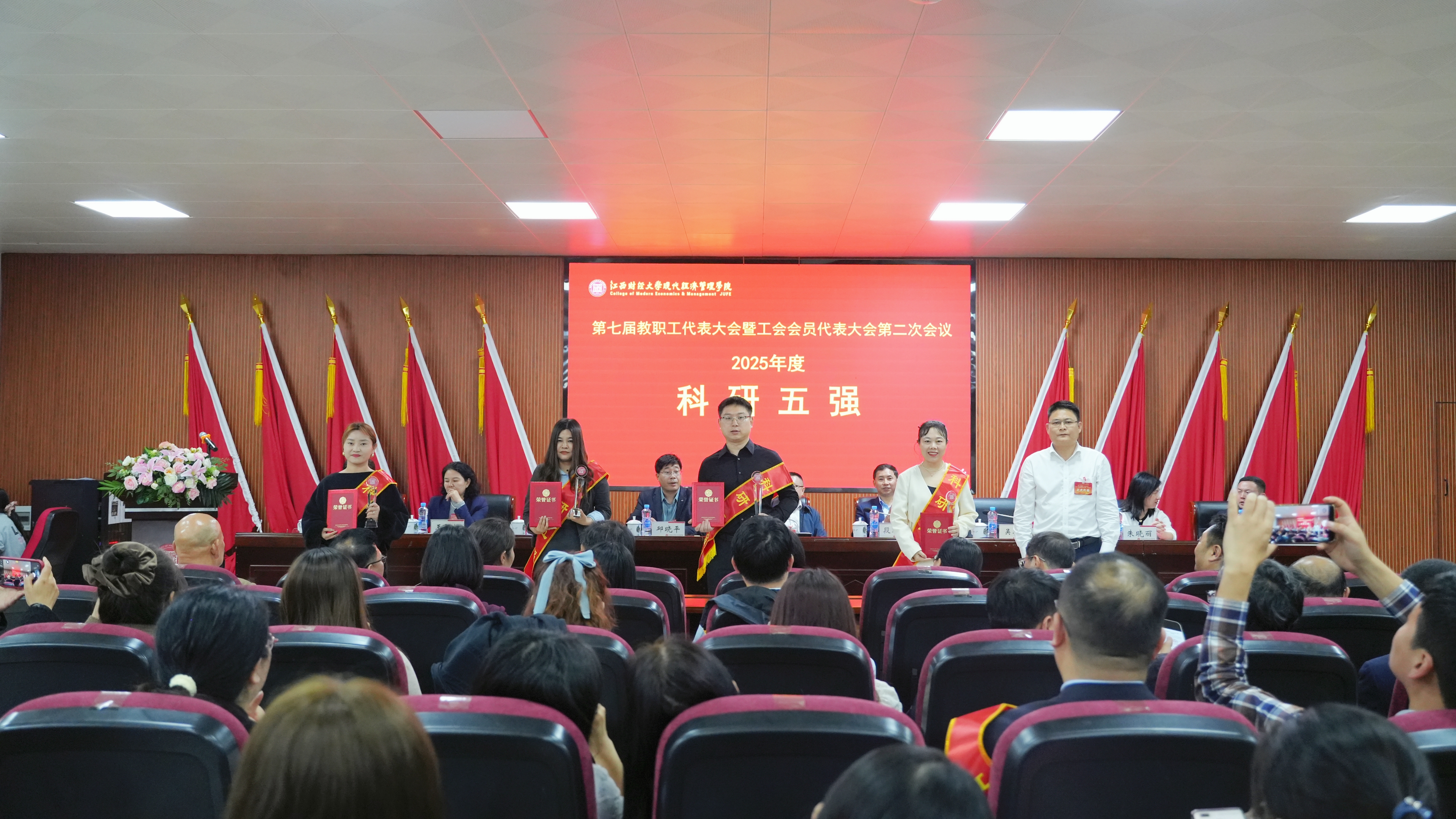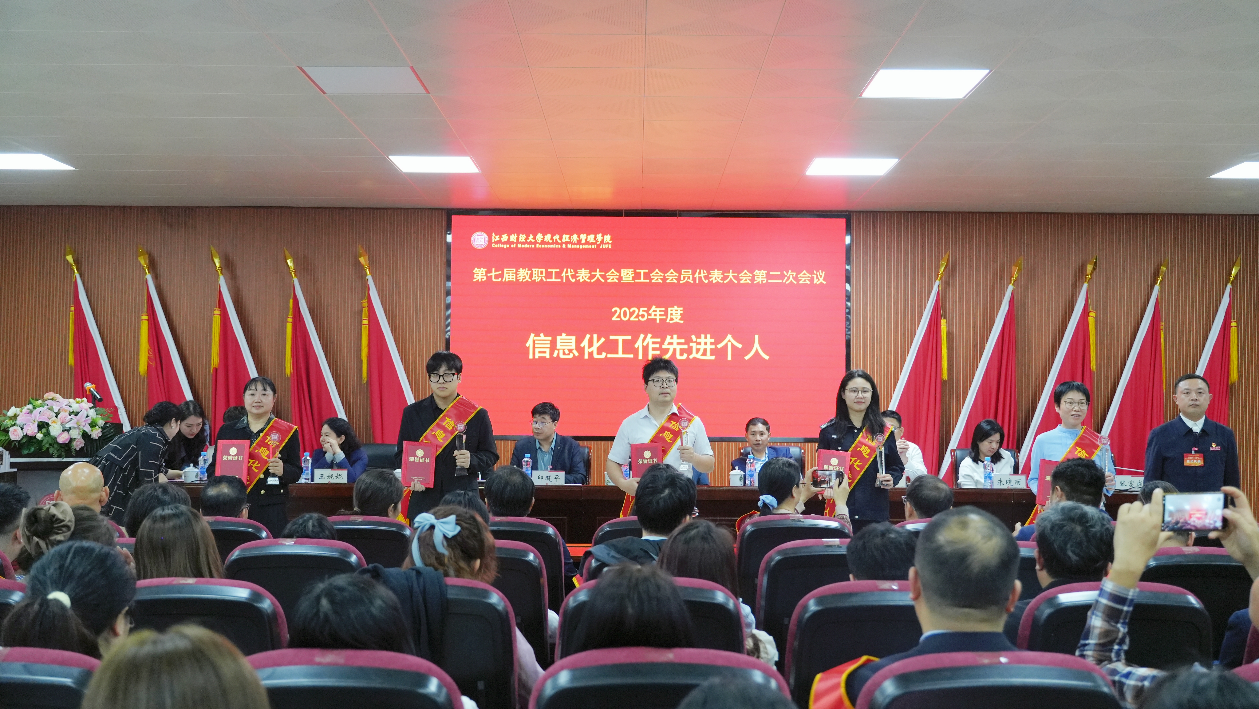 大会上表彰了2025年度先进单位、阿贝恩师典范奖、巾帼标兵、教学十佳、师德标兵、科研五强、信息化先进个人等各类先进集体和先进个人。在场院领导为获奖单位和个人颁奖。