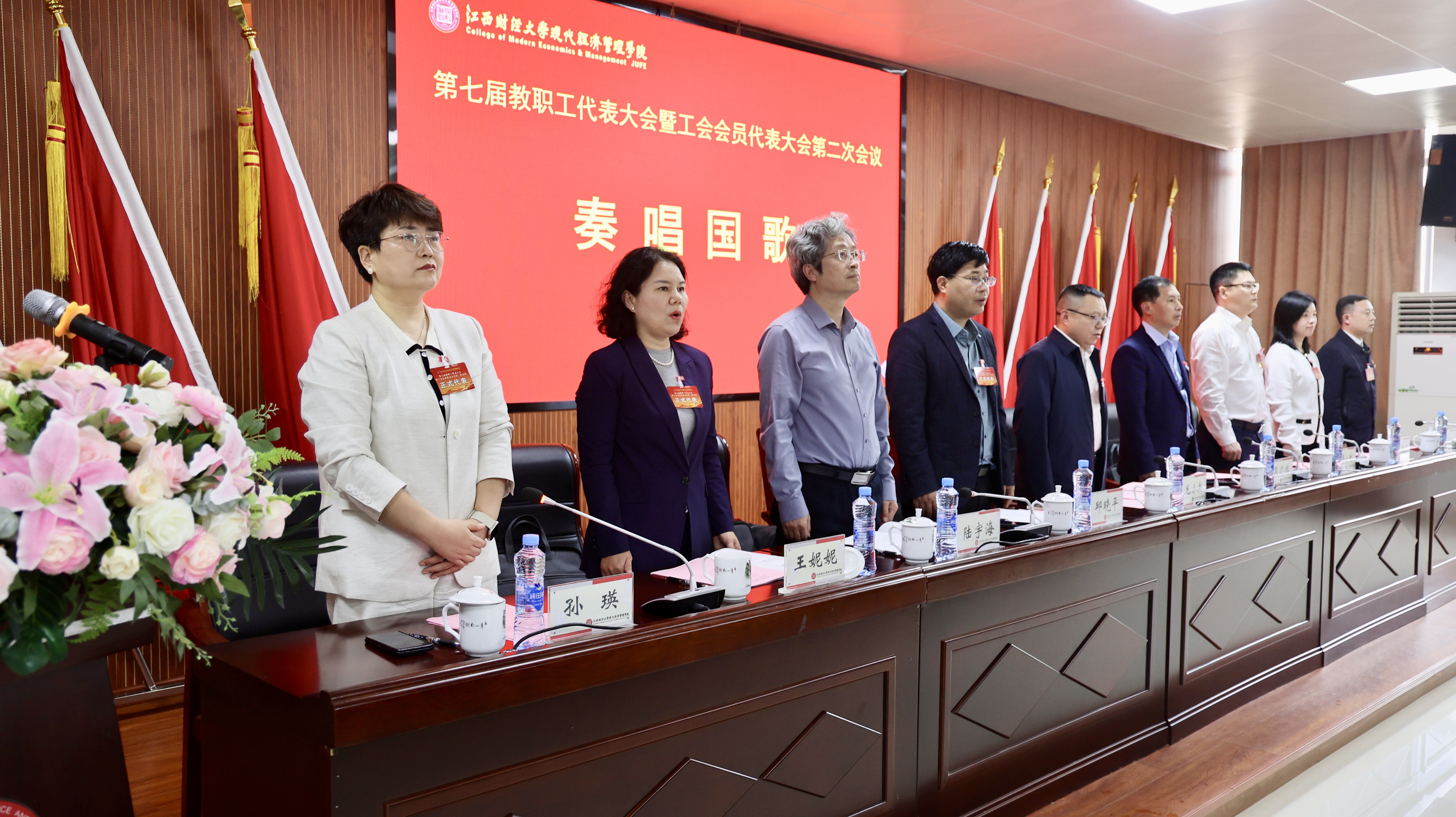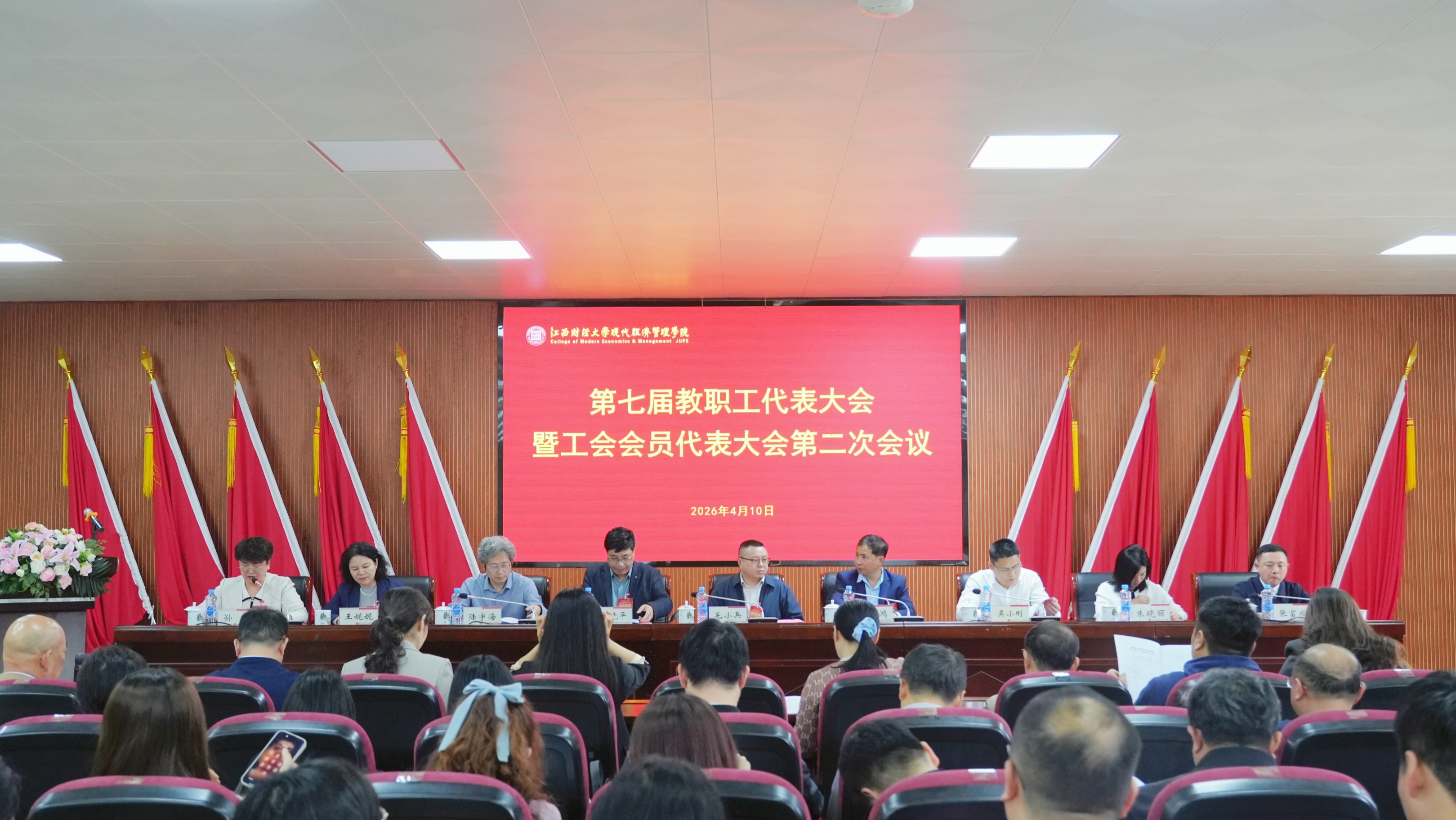 4月10日下午,学院第七届教职工代表大会暨工会会员代表大会第二次会议在敬业楼101报告厅召开。院领导毛小兵、段远鸿、邱晓平、吴小刚、陆宇海、朱晓丽、王妮妮、孙瑛、张富成出席大会,学院“双代会”代表70余人参加会议,大会由党委委员、组织部部长孙瑛主持。