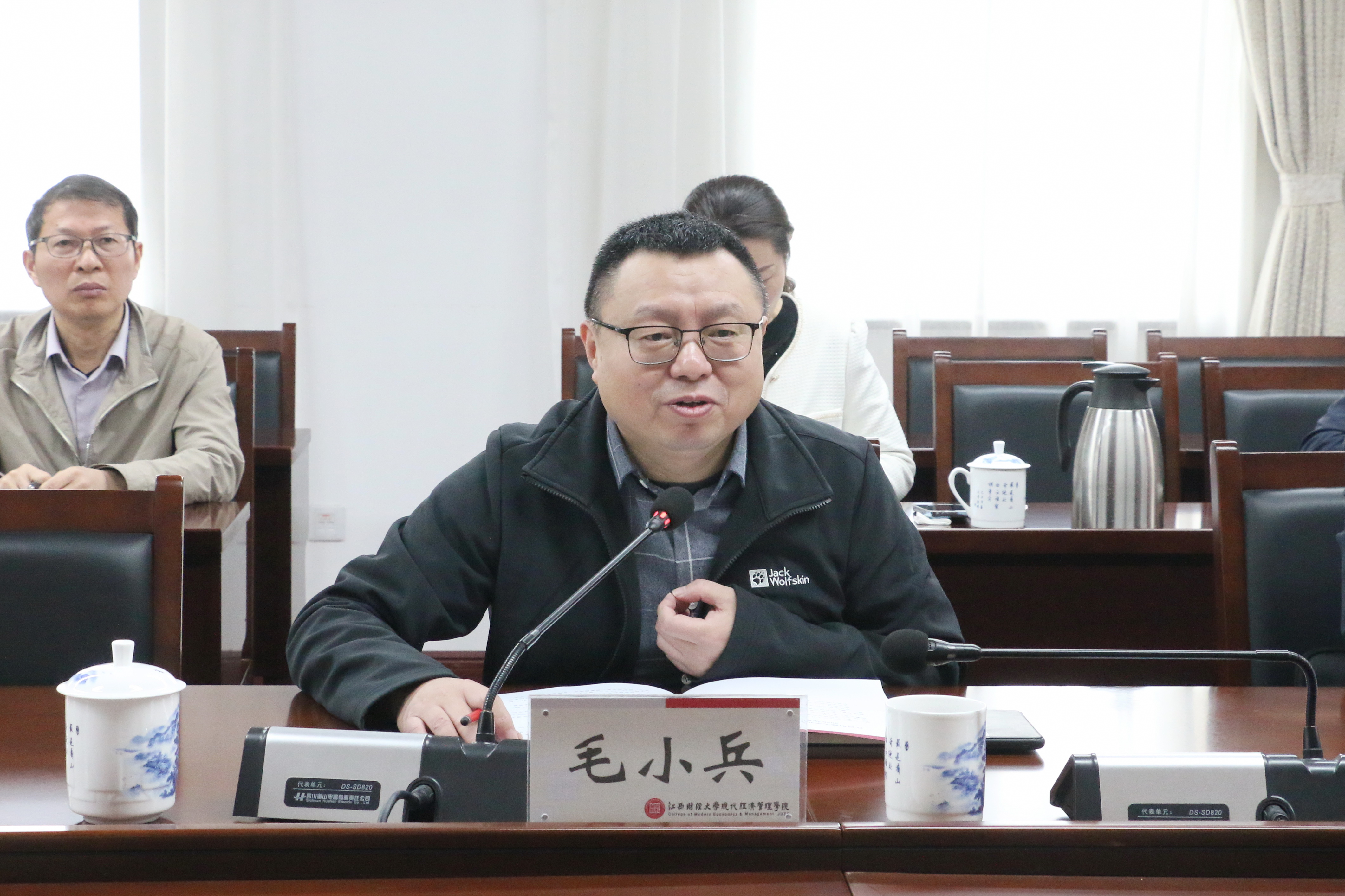 会上审议了现代经济管理学院2025年决算情况、2026年教育事业经费预算、人才招聘计划。现代经济管理学院院长毛小兵全面汇报了共青校区2025年度的财务决算执行情况,详细阐述了校区在资源利用、经费管理等方面的具体成效与经验。同时,毛小兵重点介绍了2026年度的整体预算编制思路与核心经费安排,并就新一年度的人才引进计划、师资队伍建设目标与策略进行了汇报。